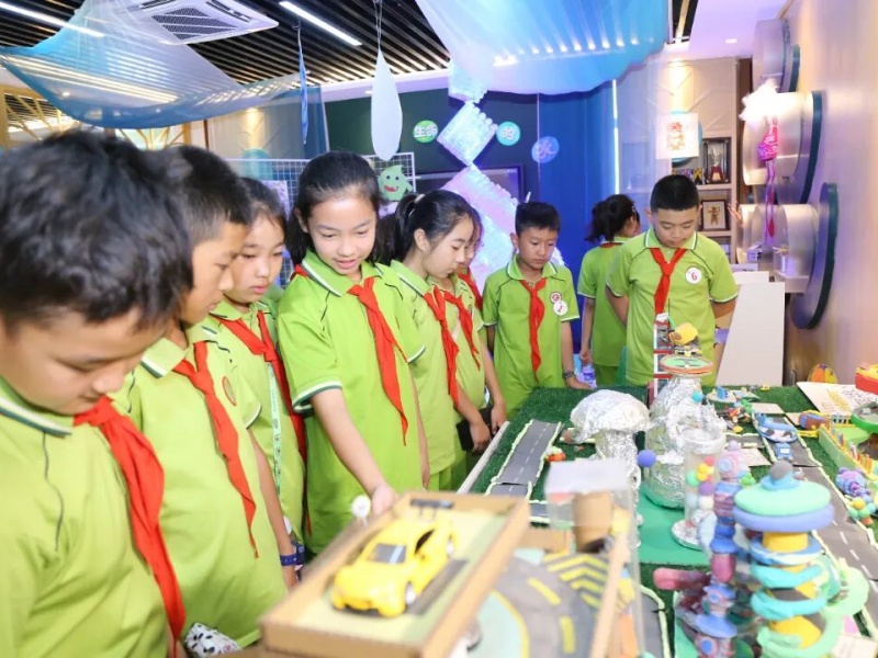 读校史探文脉:兰炼一小的孩子们走进了校史馆,聆听连小百年过往。创办人杨模先生“启迪民智”的初心,“连中三元”校名里藏着的卓越追求,还有代代相传的“读书报国”信念,让他们心驰神往;“慧学周”展厅里陈列的连小学生亲手制作的小种子画、昆虫笔记、泥塑作品、节水装置等更是吸引了他们的目光,让他们频频驻足欣赏。