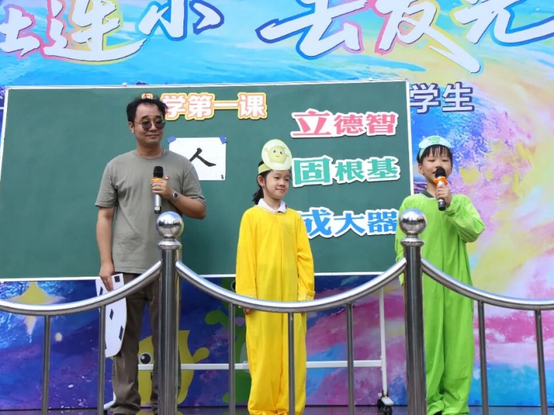 温暖的《入学第一课》开始,舞台上,老师挥毫写下“人”字,一撇一捺,立天地。校园吉祥物树仔、水宝欢快登场,用稚嫩的声音,讲述好习惯的故事。党员老师用生动的话语,把道理悄悄种进心田。每一句如细雨轻落,雕琢初亮的“星光”。
