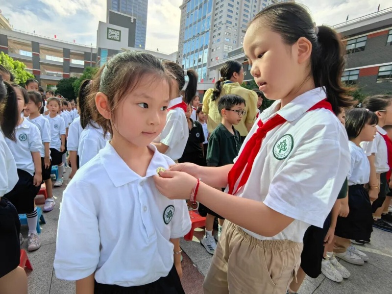 闪耀着光泽的校徽,以连元树为印,郑重别上衣襟。那一枚小小的校徽,不仅是学校的象征,更是一份传承之光的接力接过它,便是接过了连小百年的精神与期望。