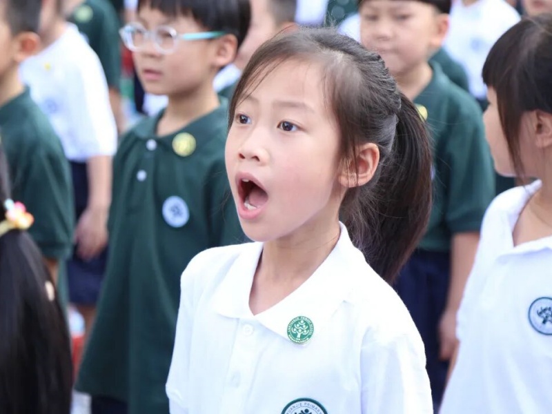 熟悉的校歌旋律响起, 孩子们用稚嫩却响亮的声音齐声合唱, 歌声回荡在校园的每一个角落, 化作一缕希望之光, 将“竢实学堂”最初的旋律 送进心田, 也把校史的记忆 悄悄融进了成长的底色。
