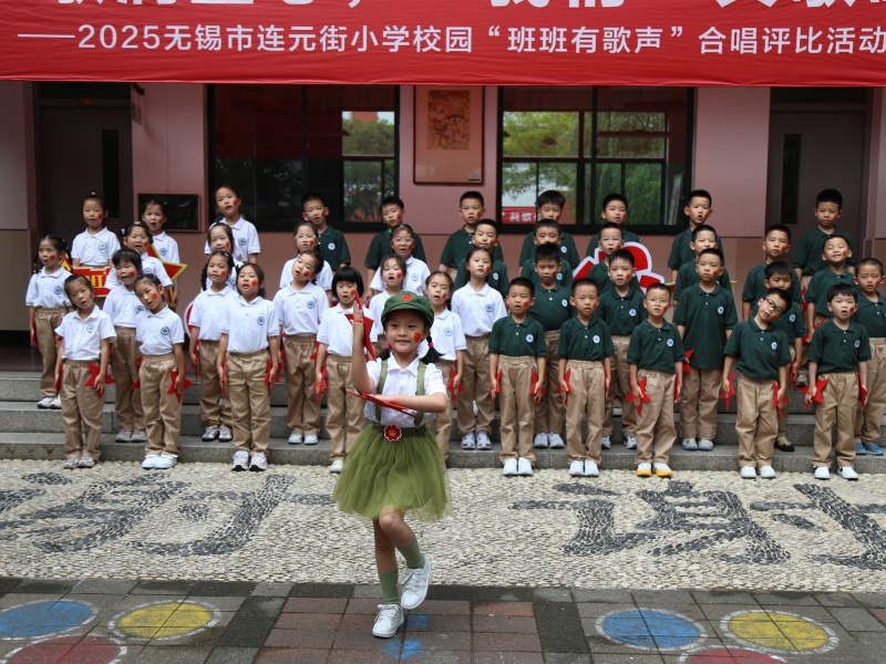 桃李园、柳莲苑里,一、二年级的小萌娃们努力挺直小小的身板,眼神里满是认真与期待。统一的服装衬得队伍格外亮眼,稚嫩的童声裹着满满可爱,伴着节奏轻晃的小身体,处处是藏不住的默契。《国旗国旗真美丽》、《卖报歌》、《红红的太阳》......一首首红歌从起调到合唱,孩子们相互配合,尽力用最清脆的歌声展现着班级的凝聚力,每个小小的团队都充满了温暖的力量。