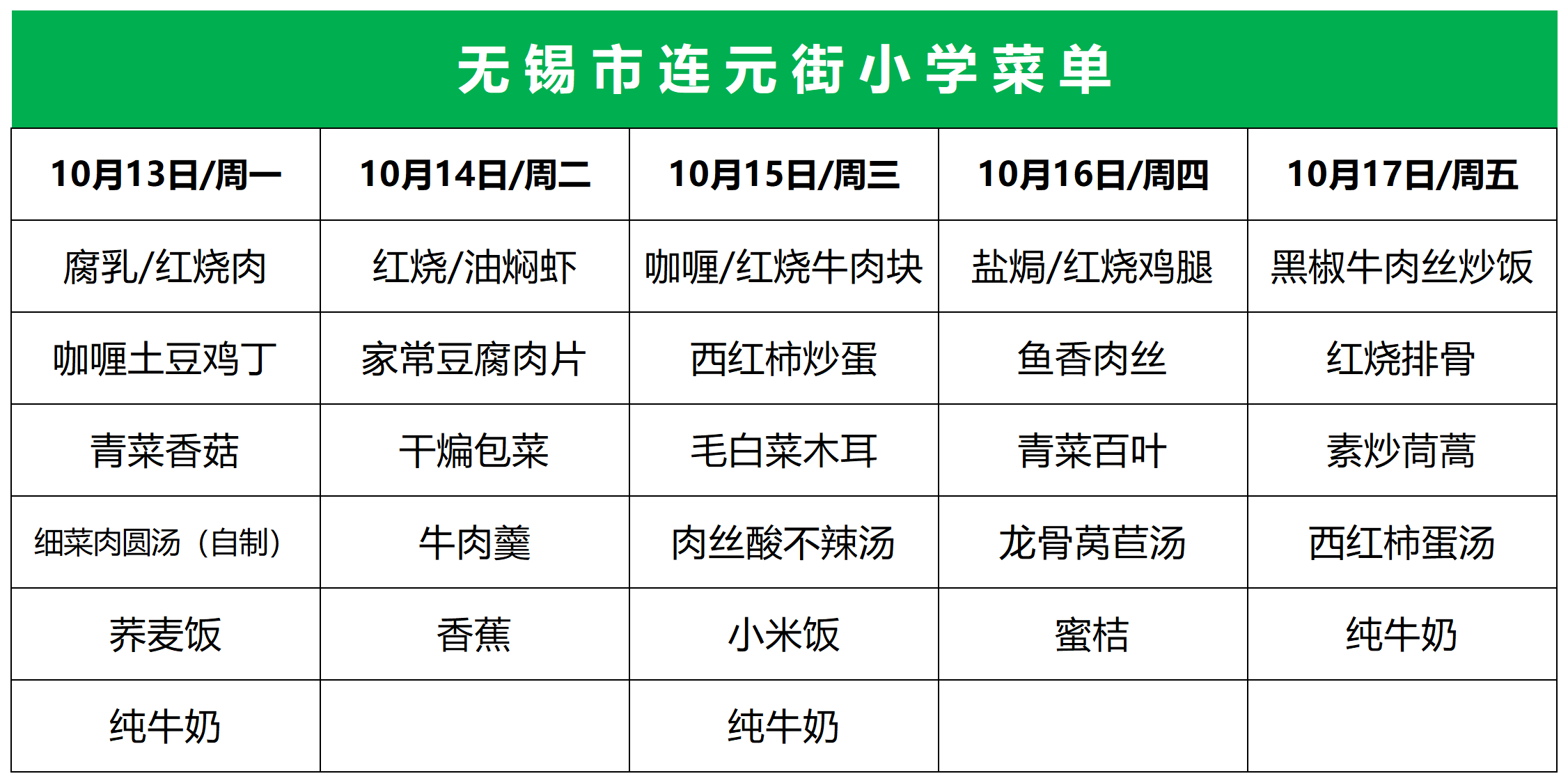 2025年10月13~17日学生菜单